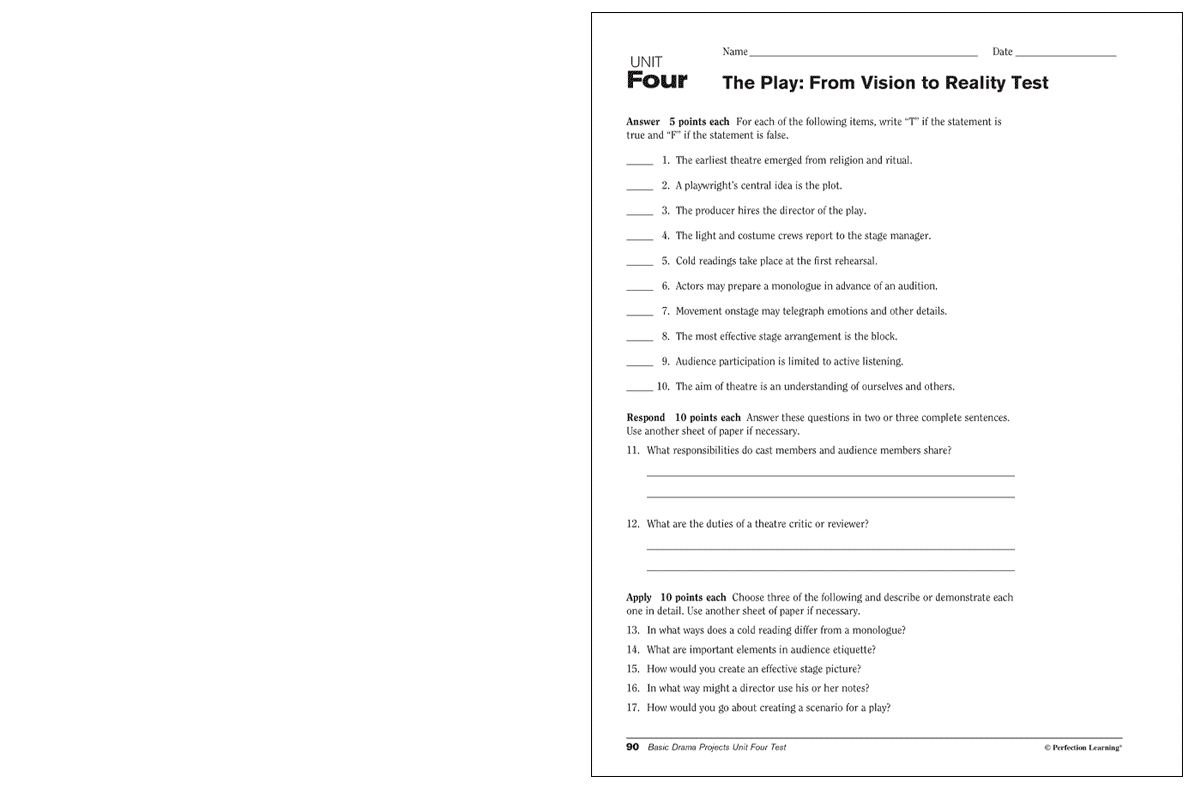 Unit Tests—Get a summative measurement of student understanding, retention, and application of theatre concepts from the chapter once completed.