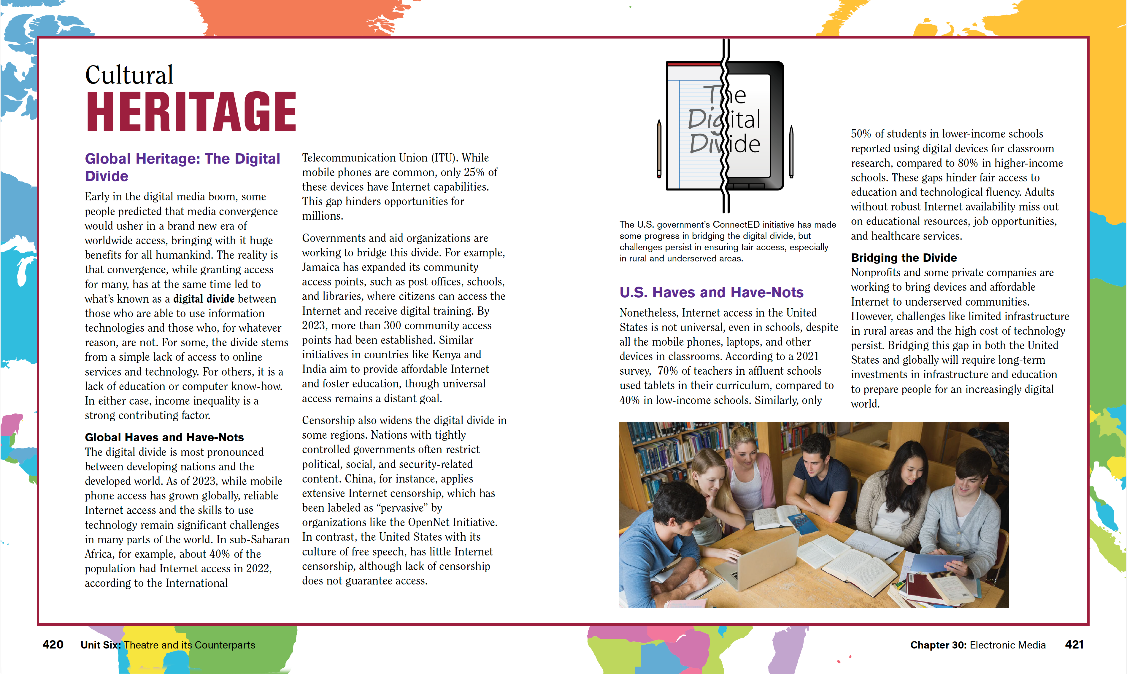 Cultural Heritage pages are integrated throughout the text and focus on influencers of drama from different corners of the globe.