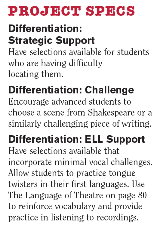 The Language of Theatre calls upon students to practice and apply language arts skills within the context of the theatre activities in the chapter.