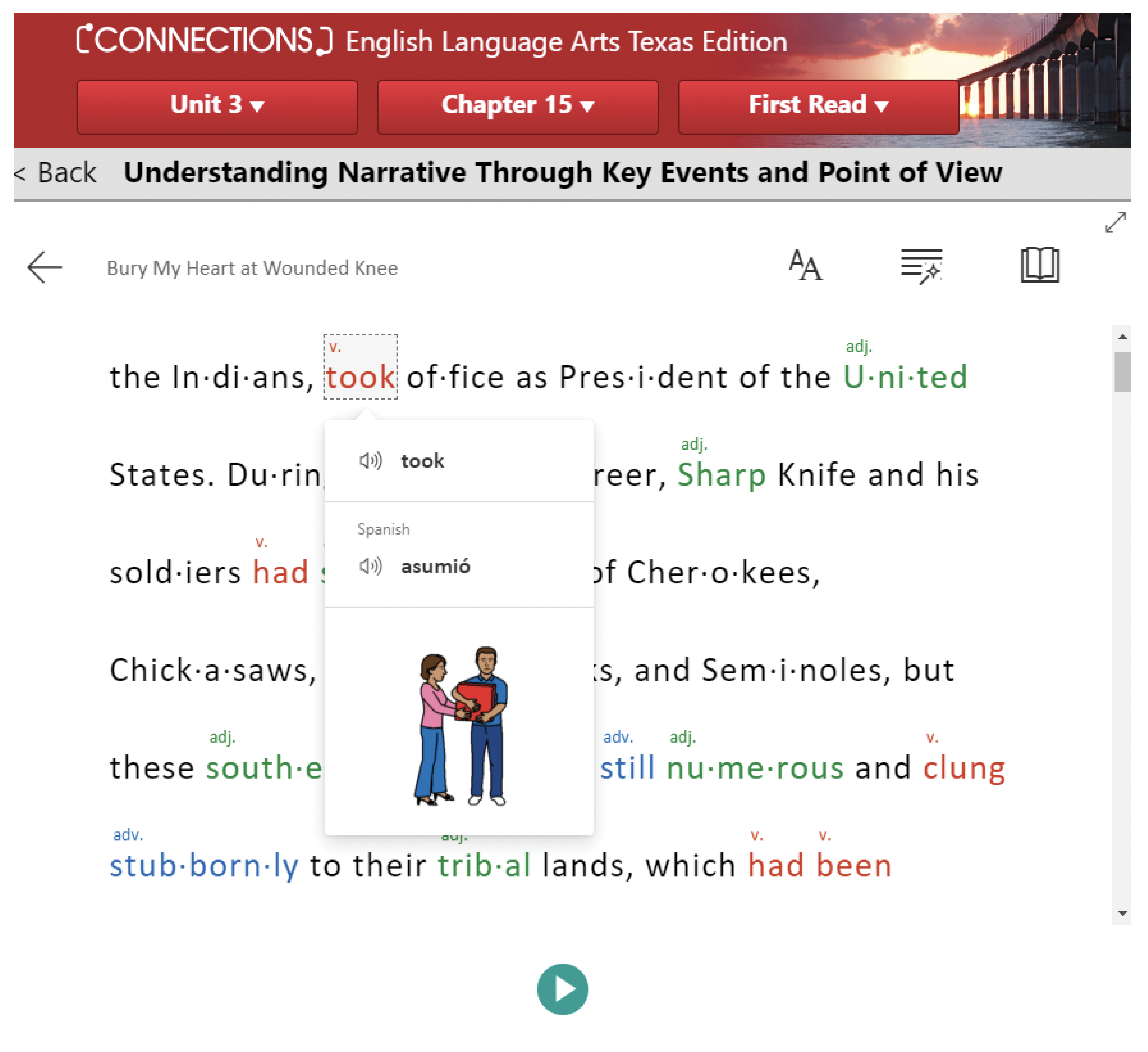 — Visualize word meanings through illustrations, syllabification, and parts of speech.